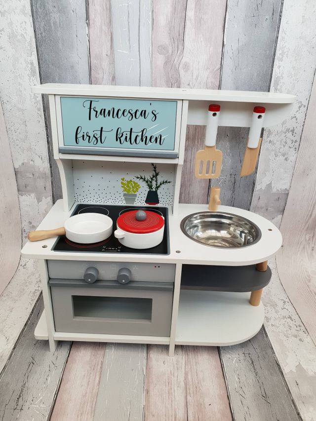 How cute is this personalized mud kitchen? The metal sink is even removable!