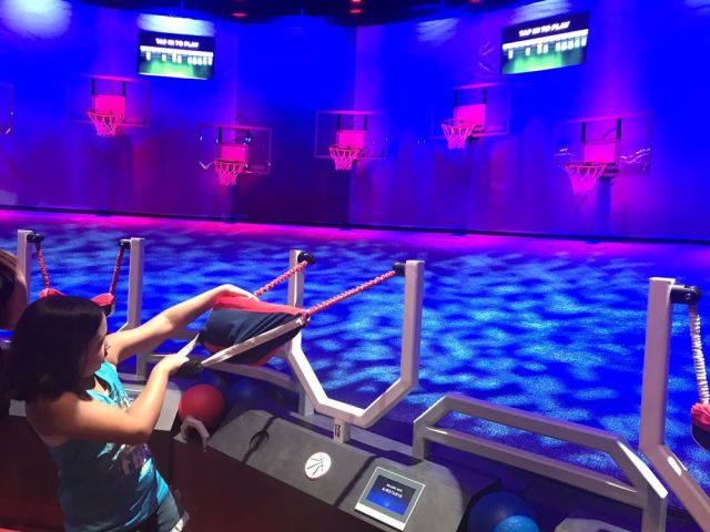 There's lots of opportunities to make baskets, from layups, free-throws and dunks (and even via slingshot, shown here). You can enter the arena to the sound of cheering fans, participate in the draft and pose with a smiling mannequin of commissioner Adam Silver, make the call as a referee, and test your knowledge of the game with trivia. And if you need a Michael Jordan-signed basketball or other high-priced memorabilia, they have that there, too.