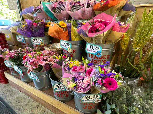 The flower scene at Trader Joe’s this time of year is not to be missed. You’ll find peonies on their way out but big bouquets of colorful blooms are available at just $6.99-8.99. They will brighten any room in your house.