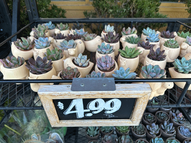 You’ll find a snail, a bird, and a turtle to choose from (or just do what we did and get all three). Succulents vary by store, but we saw at least four options at the location we visited, with some lovely purple plants to go along with the traditional green.