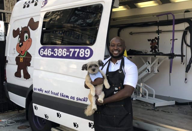 Known as "The Dogfather of Harlem" Brian Taylor owns and operates Harlem Doggie Day Spa, a one-stop shop for all your grooming, doggie daycare, walking and boarding needs. When the pandemic forced Taylor to temporarily shutter his shop, he took his skills on the road with a mobile spa that came to his customers. He then embarked (ha) on a cross-country "Pandemic Pup Relief Tour,” to offer pet grooming services to people affected by Covid-19, powered by an army of volunteers from the Black Groomers Association.