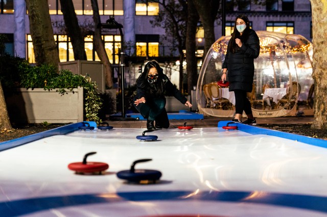 You don't even have to leave the city to give this winter sport a try, which you can do in Midtown at Bryant Park's Curling Cafe & Bar. It's "iceless" curling (on faux ice) and your reservation includes a heated dining dome, food and drink (hot chocolate, chicken tenders, etc.), and a dedicated curling lane for 90 minutes of play.