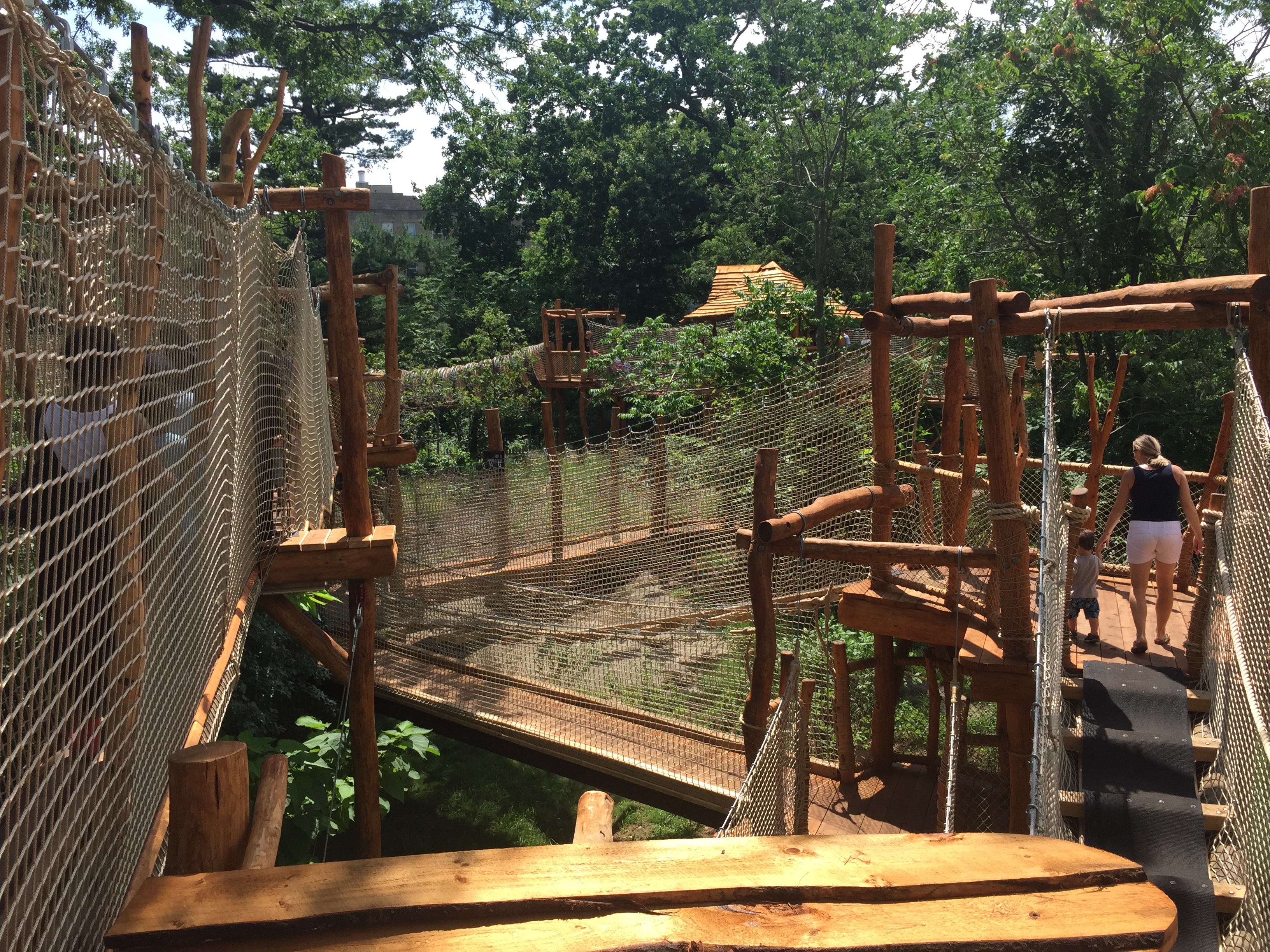 You can elect to do just the treetop course, just the ziplines, or both. All of Treetop Adventure is a separate admission tickets from the Bronx Zoo, with prices ranging from $24.95 to $59.95. If you’re going, it’s located at the north edge of the zoo, and there is a parking lot (with fee) at the entrance. For GPS directions use: Bronx River Parkway at Boston Road.