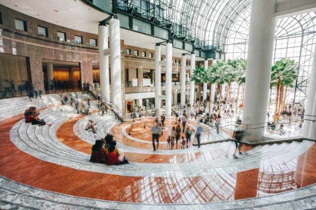 In addition to hosting one of our favorite Saturday morning family to-dos (the free, Saturday Morning Show with music, magic and more) Brookfield Place has the perfect setup for a meetup. Grab a bite from one of the many vendors at the deluxe food market Hudson Eats and then gather in the large seating area, or convene in the lovely Winter Garden, which also has lots of open space, tons of light and great views of the Hudson River and North Cove Marina. (Also, 16 40-foot palm trees taking in all that natural light.)