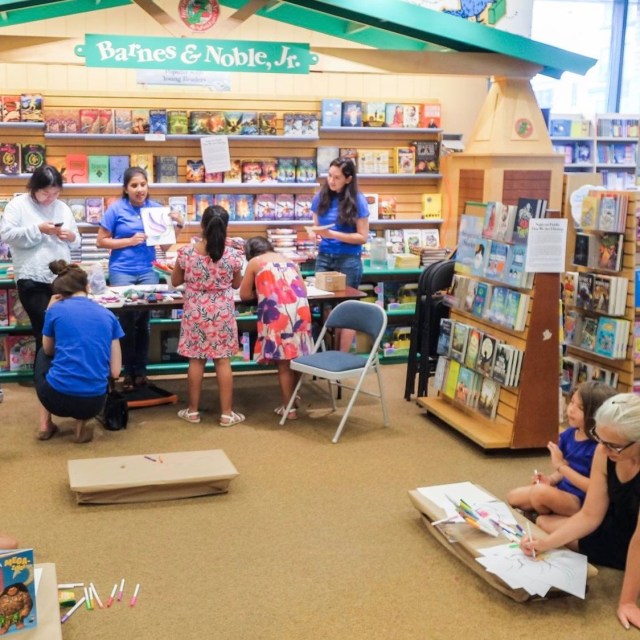 Kid area: check. Coffee: check. Lots of places to sit: Check. Plus lots of toys, an elevator, restrooms, room for strollers, etc.  Barnes & Noble has pretty much got you covered when it comes to that perfect indoor space to catch up with other parents, and you'll find stores all over the city, in neighborhoods like Tribeca, Union Square, the Upper West and East Sides, Park Slope, and beyond.  Hot tip: these stores often host kid lit book readings and character appearances, so check out your location's event calendar to see if there's one coming up for a free bonus activity.