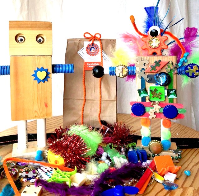 "Arts and crafts stuff. We have beads, plaster craft painting from a local store who delivered, coloring pictures."