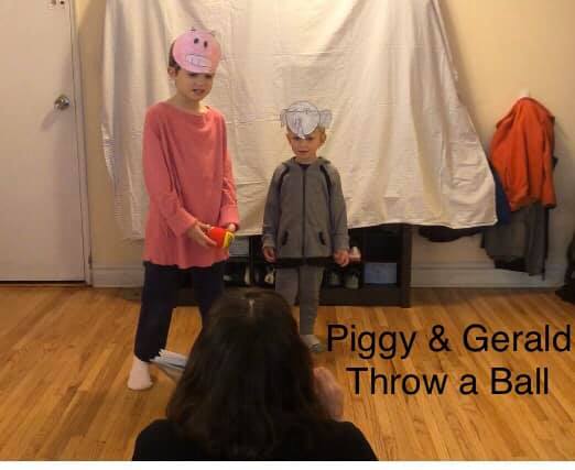 "We act out a book or story—so far PJ Masks and Piggy and Gerald—with costumes, props and scenery and record it weekly."