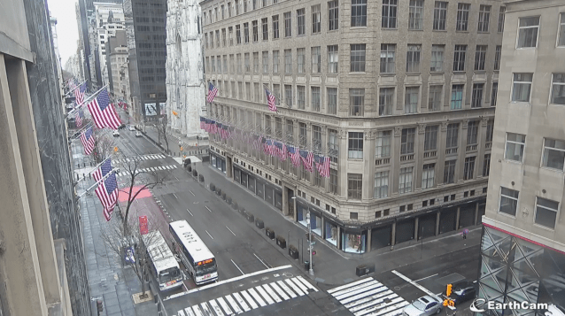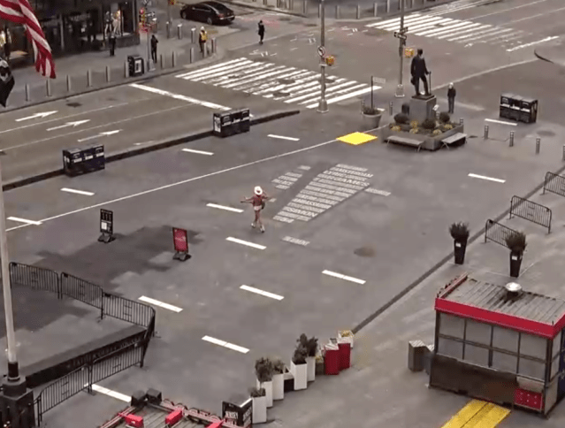 You can take your pick of views of the Crossroads of the World: Broadway, Duffy Square, the Pedestrian Plaza, etc. Of course, this is Times Square as you've likely never seen it—without a lot of people. Still, when we dropped in virtually we spotted one of NYC's beloved characters: The Naked Cowboy himself, strolling with his guitar and cheering on fellow New Yorkers from a safe distance. Yee-haw! (And yes, come back here on New Year's Eve to catch all the action in the comfort of your own home!)