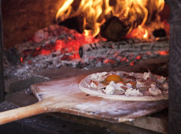 The restaurant is housed in an old bakery building, which was built in the mid-1800s by John Grace, an Irish immigrant. The spot has also been home to a Prussian cigar maker, an Italian pasta and sub purveyor and an American coal-fired pizza baker. The building’s main attraction? A turn-of-the-century coal oven that has been restored and retrofitted to burn wood. The decor is as interesting as the building’s past. The owners designed and executed everything from the beefy soapstone bar to the crazy cool pinball wall art. They even welded their own bar stools out of desks discarded from a nearby Red Hook Public School.