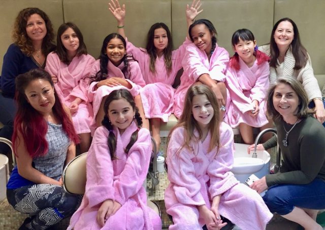 Known for being one of the most sanitary salons in Manhattan—especially because they don’t use whirlpool footbaths, super sanitize all their nail equipment, and every customer gets their own buffer and nail file—Pink Lemon Park offers glam salon services for kids. Kids can indulge themselves in: Little Princess Manicure (8-and-under) $10, Tween Princess Manicure $15, Little Princess Pedicure $20, Tween Princess Pedicure (9-12 years) $35. Party packages include Little Princess Children’s Package (manicure + pedicure + cupcake/drink) and Tween Princess Package (manicure + pedicure + cupcake/drink). Call for pricing info on spa party packages. (Hair & makeup services available upon request, as an add-on.)
