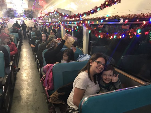 This train ride lasts about an hour and 20 minutes and gives families a chance to interact with Santa and his elves. Each child will receive a small gift from Santa's toy bag while elves and other characters lead passengers in carols and singalongs. First class travelers will also be served hot cocoa and get more comfortable seating. Afternoon and evening rides are available, with evening rides being lit up with Christmas lights. Keep in mind that there are no restrooms on the trains.