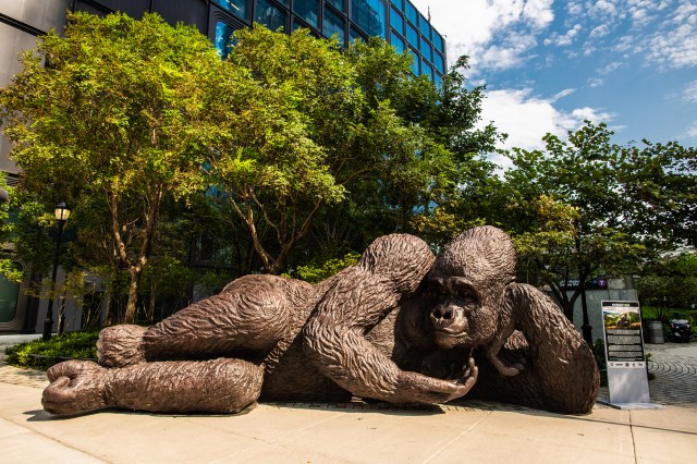 NYC streets and parks are full of culture, history, and art. For some fresh artworks, check out the temporary installations. At the time of this writing, the temporary artwork on display includes a colorful parrot in Highland Park and a charming reclining gorilla in Bella Abzug Park.