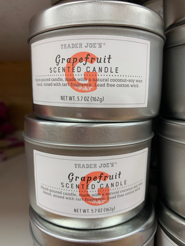 Embrace the fragrance of spring and summer with Trader Joe's hand-poured Grapefruit Candle. For just $3.99, you can enjoy the natural soy-coconut wax and a lead-free wick at quite the bargain. Coming in a tin with a lid, take this candle with you whenever you go for om-worthy relaxation.