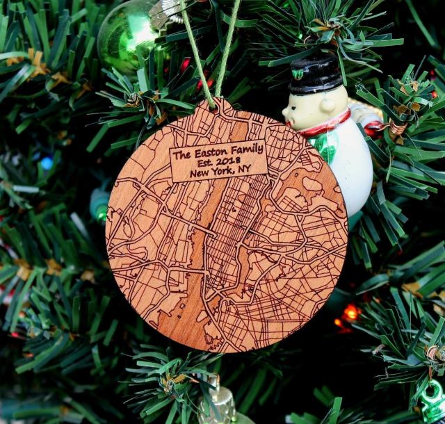Custom Wood NYC Map Ornament