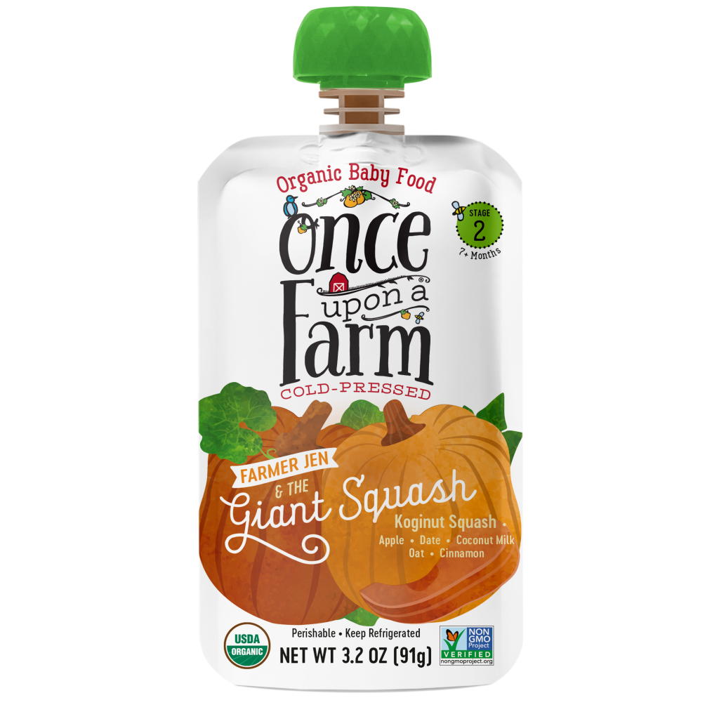 In collaboration with Row 7, Garner’s Once Upon a Farm just released Farmer Jen and the Giant Squash, a stage 2 baby food pouch made with Row 7’s Koginut squash. This unique squash is also special because it was raised on Garner’s own family farm in Locust, Oklahoma.