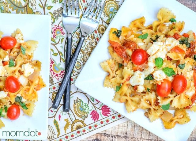 The caprese pasta is a traditional Italian meal full of fresh ingredients. It’s a refreshing meal that won’t sit heavy in your stomach at the end of a busy day. This recipe from Momdot uses fresh basil, grape tomatoes, and mozzarella, and draws its flavor from a Balsamic Vinegar dressing. It’s one-pot and low-fuss, as it requires no draining at all.