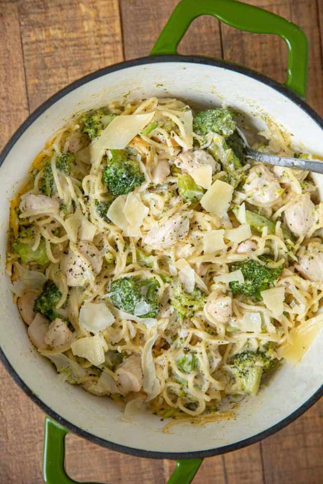 Don’t be intimidated by the idea of making alfredo sauce from scratch—this chicken alfredo from Bake Me Some Sugar is entirely homemade and still comes together in one pot. The result is rich, creamy, and deliciously garlicky. It’s also super versatile: The chicken and broccoli can be swapped out for other proteins and veggies to suit your family’s preferences.