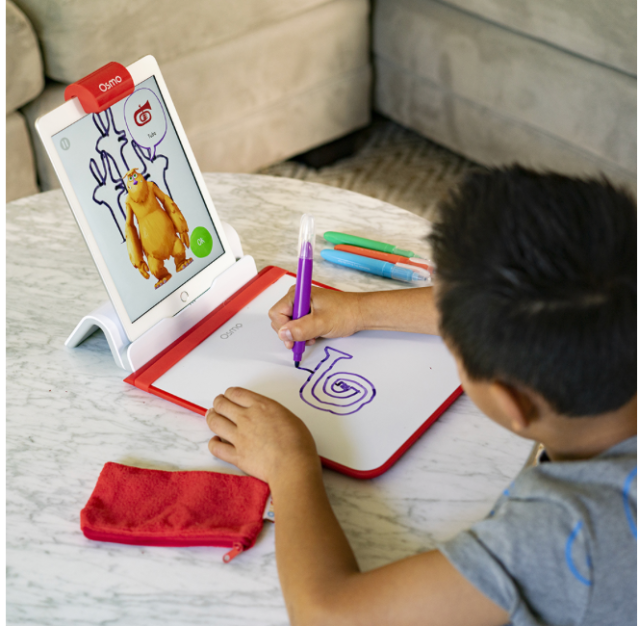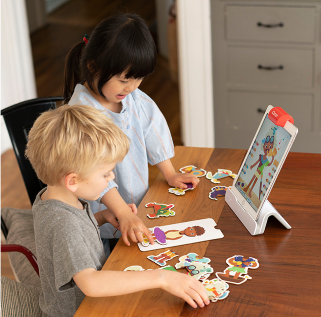Osmo is an educational (but they don’t need to know that) game system that’s fun, academic, confidence-building and creative. This leading-edge tech uses tangible pieces to create a hands-on learning experience second to none. Osmo is an engaging and lovable character that connects with your child, as he can magically “see” how your child is coming along with activities and respond in real-time! A true one-on-one learning experience transforms how kids learn, combining tactile exploration with innovative technology. Bottom line—you won’t find another learning system out there like this, and your kid will keep coming back for more! Read on to learn more about the Osmo kits (and be sure to let the Easter Bunny in on your favorite for the big day!).
