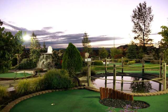 Eagle Landing Golf Course If you are looking for a scenic mini-golf experience Eagle Landing is your place to go. It's 36-hole challenge winds through trees, waterfalls, fountains, and mountains keeping the game interesting and pleasing to the eye. While getting out your clubs is the perfect summer activity, this location stays open during the day all year long and then extends into the evening during the warm months. Bonus: This location also offers nine holes of Soccer Golf, the facility is designed to offer both beginning and avid golfers an experience unlike anything else in Oregon.