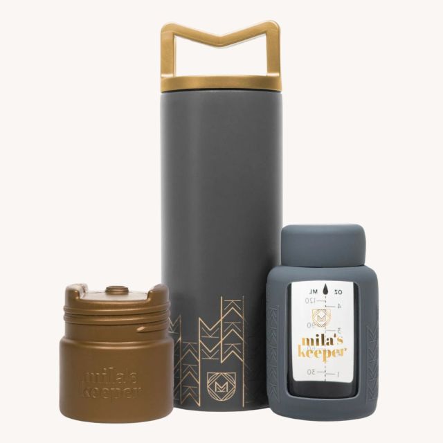 For pumping moms on the go, this bundle from Mila's Keeper is perfect. It includes one breastmilk cooler, a glass breastmilk storage bottle, and one ice pack that that fits perfectly in the cooler.