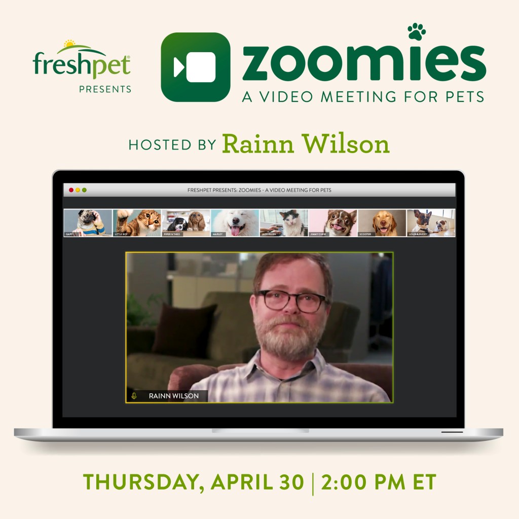 Everyone is getting their fair share of Zoom meetings lately, and Freshpet is making sure that no furry friend is left behind. The company is partnering with comedian, actor and writer Rainn Wilson for the first ever “Zoomies” conference meeting for pets!