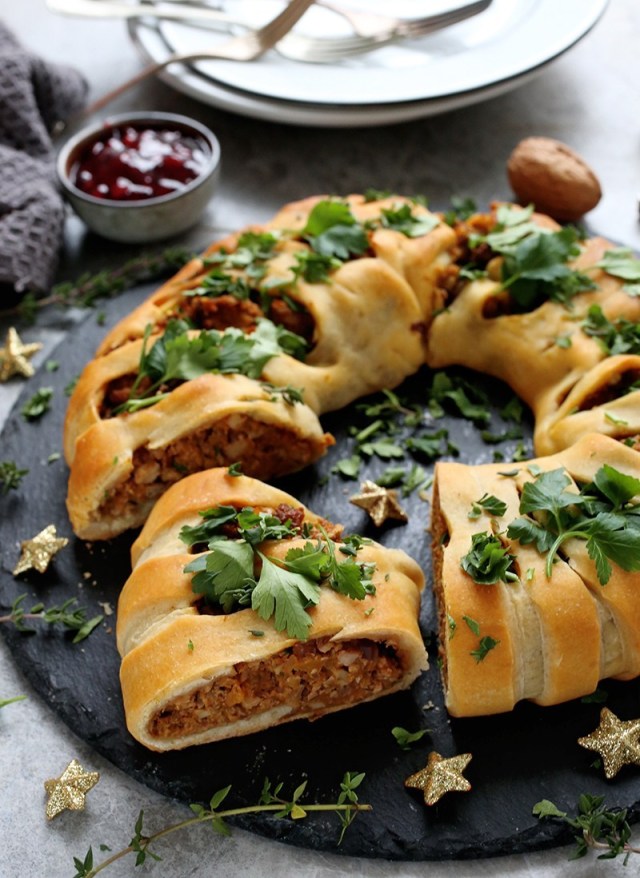 This show-stopping dish from Very Vegan Val just might upstage the turkey. It might look tricky to make, but it’s actually pretty easy to put together using pre-made pizza dough. To get all the details, click here.