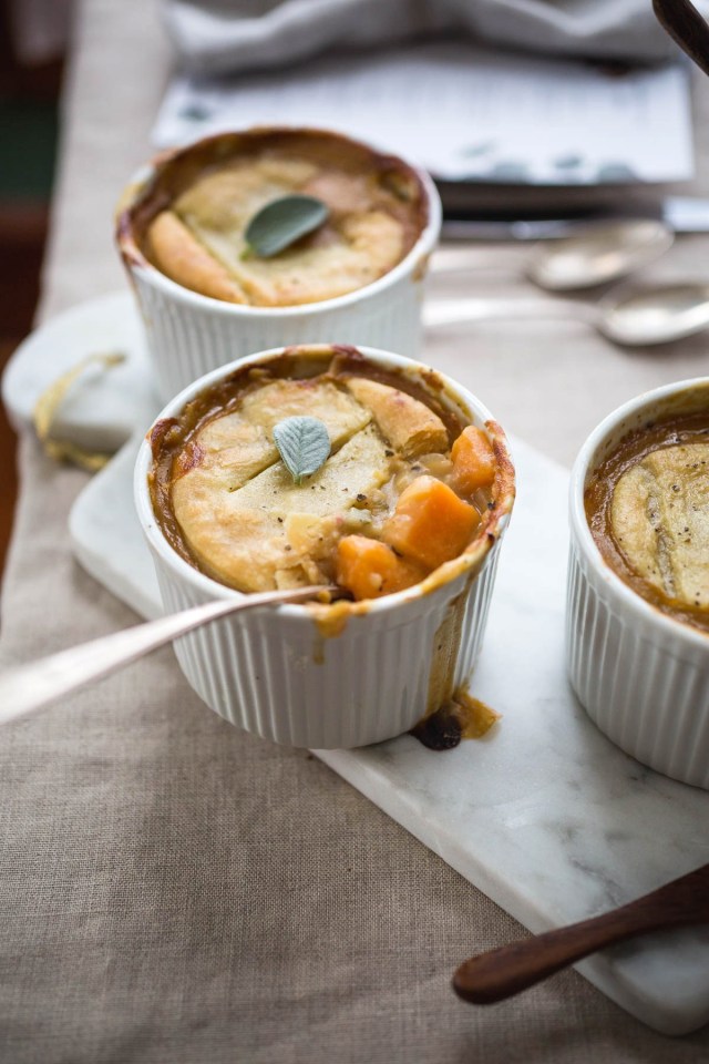Put the season's pumpkins to good use by whipping up a batch of pot pies inspired by Vegetarian Ventures. White beans give the dish a bit more protein, and using store-bought puff pastry helps it come together fairly quickly. Click here to see the recipe.