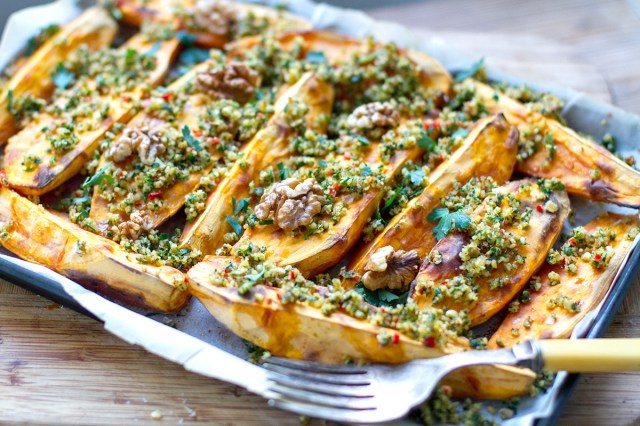 These sweet potatoes from Irena Macri are a feast for the eyes and the stomach. The key is the super flavorful topping, made with a delicious mix of walnuts, herbs and garlic. Click here to get the recipe.