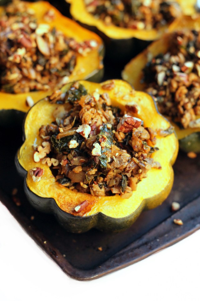 Vegan, gluten-free and completely tasty, this main dish from Hummusapien is sure to be a hit with vegetarians and carnivores alike. We love using acorn squash (in addition to being delicious, it’s also pretty to look at), and with a savory tempeh, mushroom and kale filling, it makes a super satisfying meal. To get the recipe, click here.