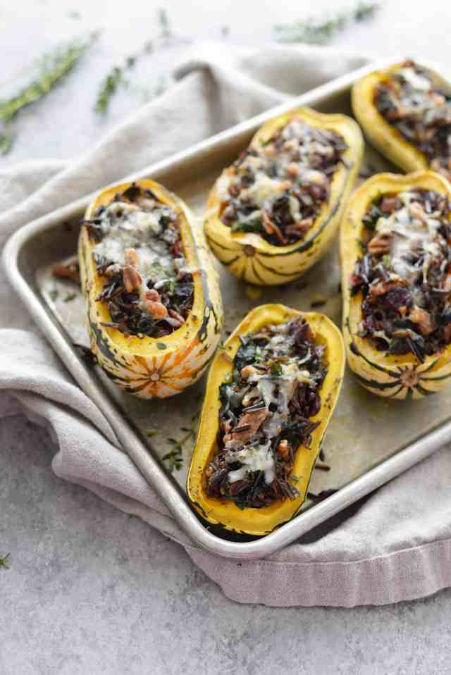 This fall feast from Delish Knowledge is so gorgeous that even meat eaters will want in on it! With pretty delicata squash, hearty wild rice and tart dried cranberries, it’s guaranteed to be a Thanksgiving hit. To get the recipe, click here.