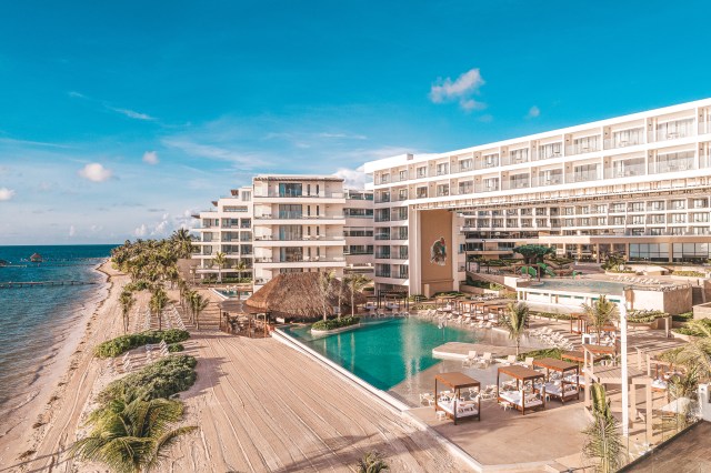 This 458-room resort is located just 25 minutes from Cancun International Airport. From standard rooms to family junior suites that sleep two adults, three kids, and comes with a hammock on the balcony, there’s ample space to accommodate your crew—including connecting rooms if you decide to make this a multi-generational or multi-family stay. There are three pools on the property—two of them are located on the lagoon side with one attached to the kids club and is a kids' paradise with water slides and water cannons.
