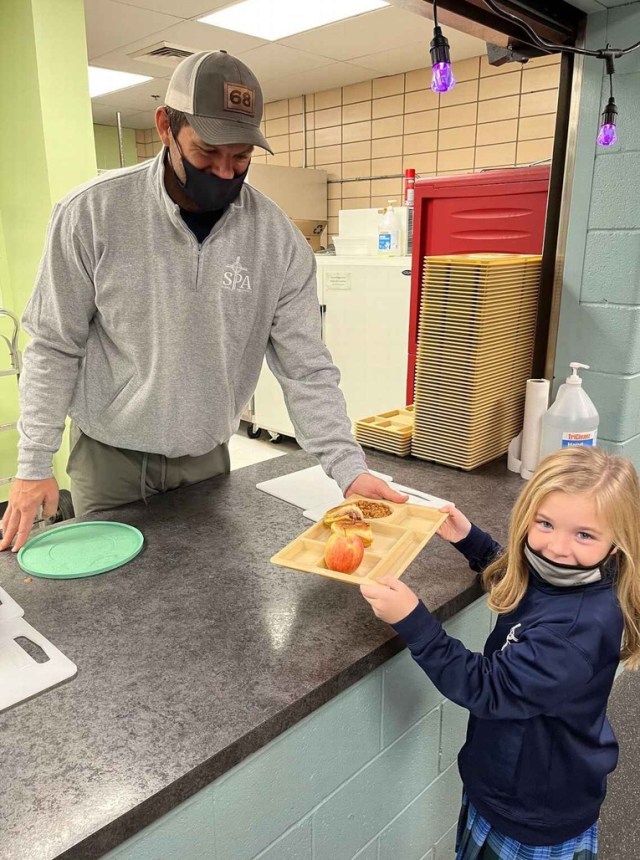 If seeing retired 6’8″, 330-lb. NFL offensive tackle Jared Veldheer serving homemade lunches in your school cafeteria doesn’t make your kids believe that eating their veggies will actually—no kidding—make them big and strong, we’re not sure what will. The father of two retired from 12 years of professional football and is now the the kitchen director at St. Paul the Apostle School in Grand Rapids, Michigan.