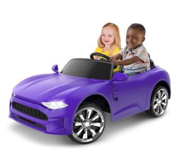 $149 BUY NOWGrab your shades and shift playtime into gear with this fun ride-on car that's built for two! Working headlights, sound effects, FM radio and MP3 input all add to the playtime fun; while real foot pedal acceleration creates a lifelike driving experience.Age: 3-7