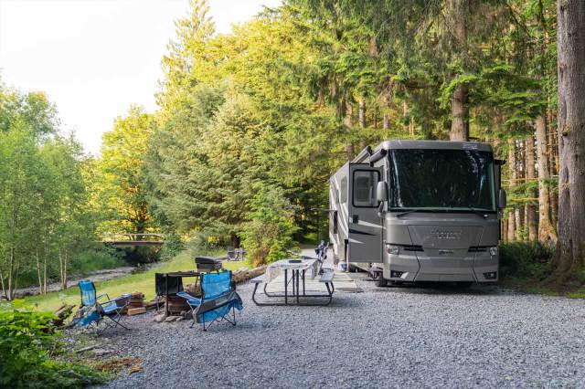 At the foot of Mt. Rainier sits this lovely campground that will really make you feel like you are away from it all. Guests find the campsites to be spacious and the views incredible. Conveniently located just a 15-minute drive to the Nisqually Gate of the Mt. Rainier National Park, the park is a great home base for your national park visit.