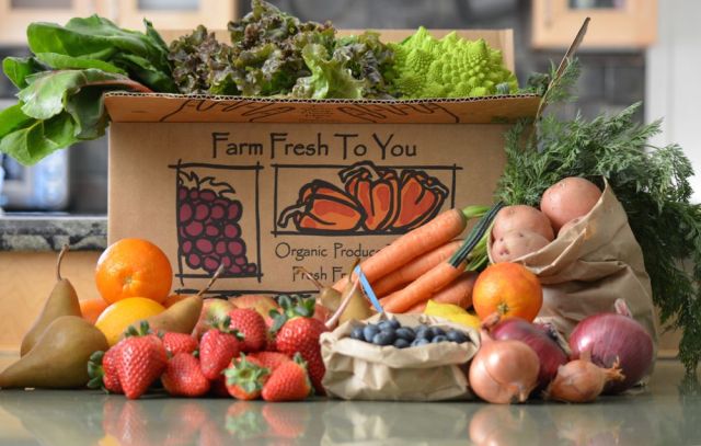 Farmbox offers various size boxes packed with seasonal, farm-fresh fresh fruits and vegetables to your door. You select the shipment size and customize your box, and check your doorstep for easy monthly deliveries.