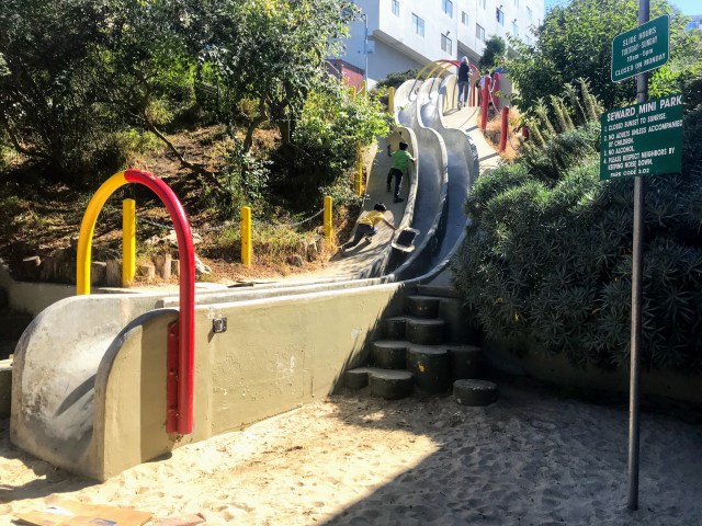 The location of this rad playground at the top of Nob Hill, across from Grace Cathedral and the Huntington Hotel, means getting there is half the fun: take a cable car or walk up one of downtown's steepest inclines. There’s also the historic Flood Fountain at the park’s center, and you can count on lots of cute neighborhood dogs.