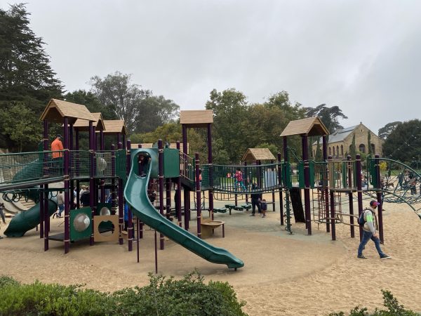 Locals call it the Blue Boat Playground and your little pirates will love the actual boat docked in the sand at this playground. Though this isn’t a recent reno it’s still a well-kept and well-loved playground in Golden Gate Park’s outer reaches. Surrounded by big trees, it’s shadier and cooler than some other spots, so keep those fleeces on hand for when Karl the Fog comes to play. The picnic area is reservable through GGP. Brand-new restrooms are scheduled to open soon!