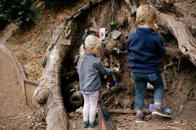 In San Francisco’s Glen Canyon Park, there lives banana slugs, coyotes and it’s most unique inhabitant: fairies. With the scenic views of the canyon and the feeling of being in a faraway land—not in the middle of an urban city—two fairies have taken up residence there. One is at Silver Tree Camp, also known as the Glen Ridge Co-op building. The other is on the unofficially named Banana Slug Trail. Both within a two-minute walk from each other, which makes for a delightful kid hike.