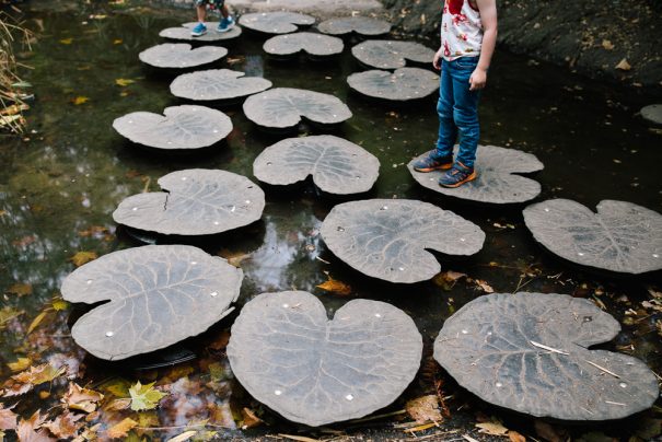 Keep your eye out for secret trails and a lily pad hop that your children will love skipping around on. But be careful! One small slip and they’ll fall into a shallow pool of water.