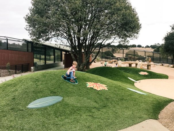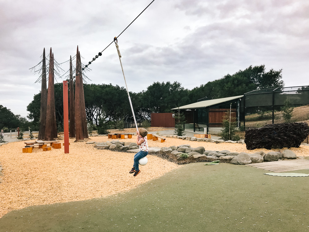 Walk the “California Trail” to the newly-opened playground and watch your kids go wild! This playground has a stream running through it, a rocky mountain to climb, grassy hills to slide down on mats and a mini zip-line. You’ll want to block out a good amount of time for the kids to run and explore here. And don’t be shocked if you see a black bear climb a tree and hangout on a branch from it’s nearby home.