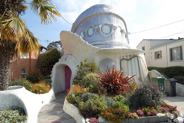 Despite Berkeley’s reputation for eccentricities, this structure looks more suited for Bikini Bottom, the underwater hometown of Spongebob. Built in 1995 and designed after an indestructible sea-dwelling microorganism called the tardigrade, Ojo del Sol (which means Eye of the Sun, but Fish House works just fine for most locals) was built by architect Eugene Tsui who specializes in biomimicry, the practice of applying the study of nature to human issues. Tsui claims the house is one of the world’s safest dwellings. Tsui also designs cool futuristic apparel that would be right at home in the closet of any Star Trek villain.