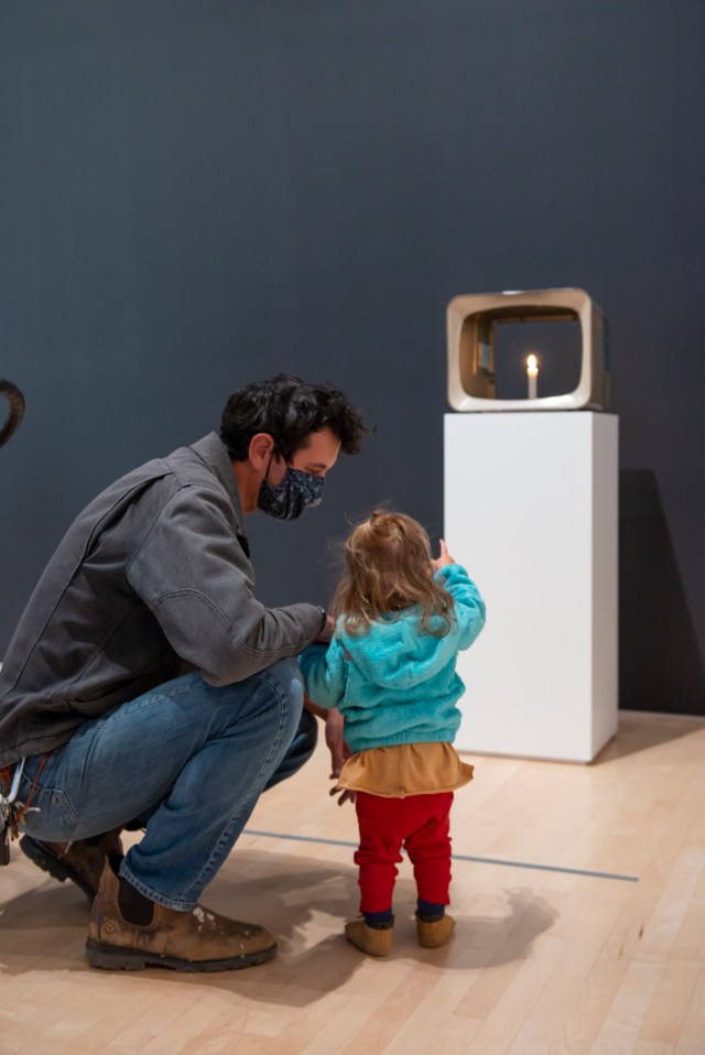 Adam Jacobs, exhibit: Nam June Paik, One Candle, 2004 (installation view, Nam June Paik, SFMOMA, 2021); courtesy the Estate of Nam June Paik © Estate of Nam June Paik
