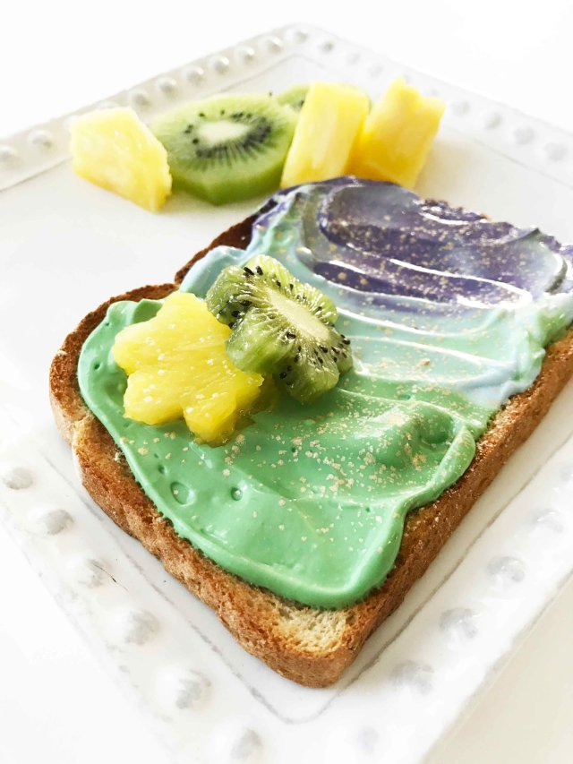 Move over avocado toast, it's time to enjoy this breakfast fave mermaid-style! This healthy option is made with cream cheese and yogurt for a sweet and tangy toast that's made even more magical with fun food coloring. Find the easy recipe at The Skinny Fork.