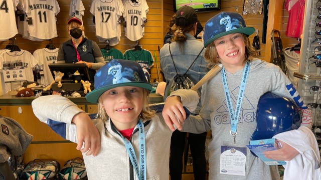 After meeting the Moose, mosey on over to the Kids Clubhouse retail shop to take advantage of that 10% Kids Club discount (good for hats and apparel) in case you need a little extra Mariners spirit. This shop is located just down from the Moose’s Den and has everything a little leaguer might need to be decked out and ready for the game. Oodles of hats, shirts, hoodies, baseballs, souvenir bats, cards, stuffies, stickers...everything a true fan needs. You can't strike out on super cool Mariners swag here.