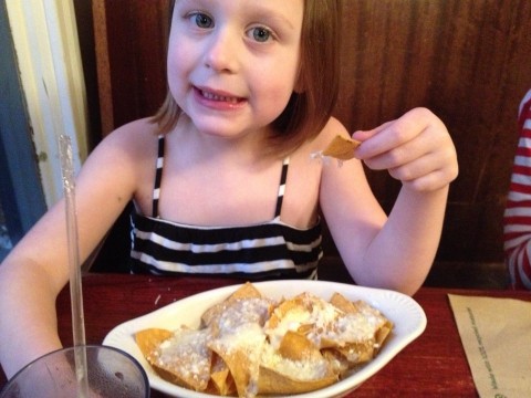 The kids’ menu is short, sweet and perfectly delicious. Our mini-food critics gave double thumbs up to the quesadilla (cheese only), which was big enough to feed two toddlers. The nachos were also a hit and were declared to be “so cheesy!” All of the kid entries are less than $5 each and include a drink from the fountain machine (we promise not to tell your kids that!). They also have Mexican sodas, which are fun for a special treat — get one to share to prevent sugar-induced Mexican hat dancing at 10:00 pm.