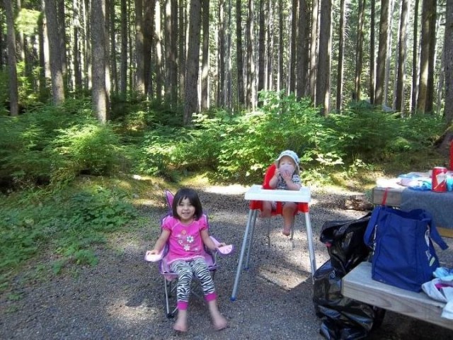 If your kiddo is part fish, you won’t want to miss Twanoh State Park. With the warmest saltwater beaches in the state, families can wade away the summer days at this 182-acre state park in the Hood Canal. When you’re feeling waterlogged, lace up your hiking boots and enjoy a scenic hike along the Twanoh Creek. Or slip on your rain boots and take the tots out to hunt oysters along the shore. Don’t forget your shellfish license because this park is known for its oyster bounty. There are plenty of campsites to choose from here, but if you’re looking to get away from the hustle and bustle, try tent sites 17–24. They’re set apart, but still have easy bathroom access for those toddler “dancing” moments.