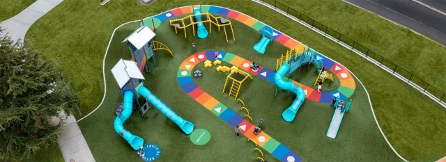 Good to know: it also sports a splash pad, waterfalls, and sensory water table for those upcoming hot summer days!