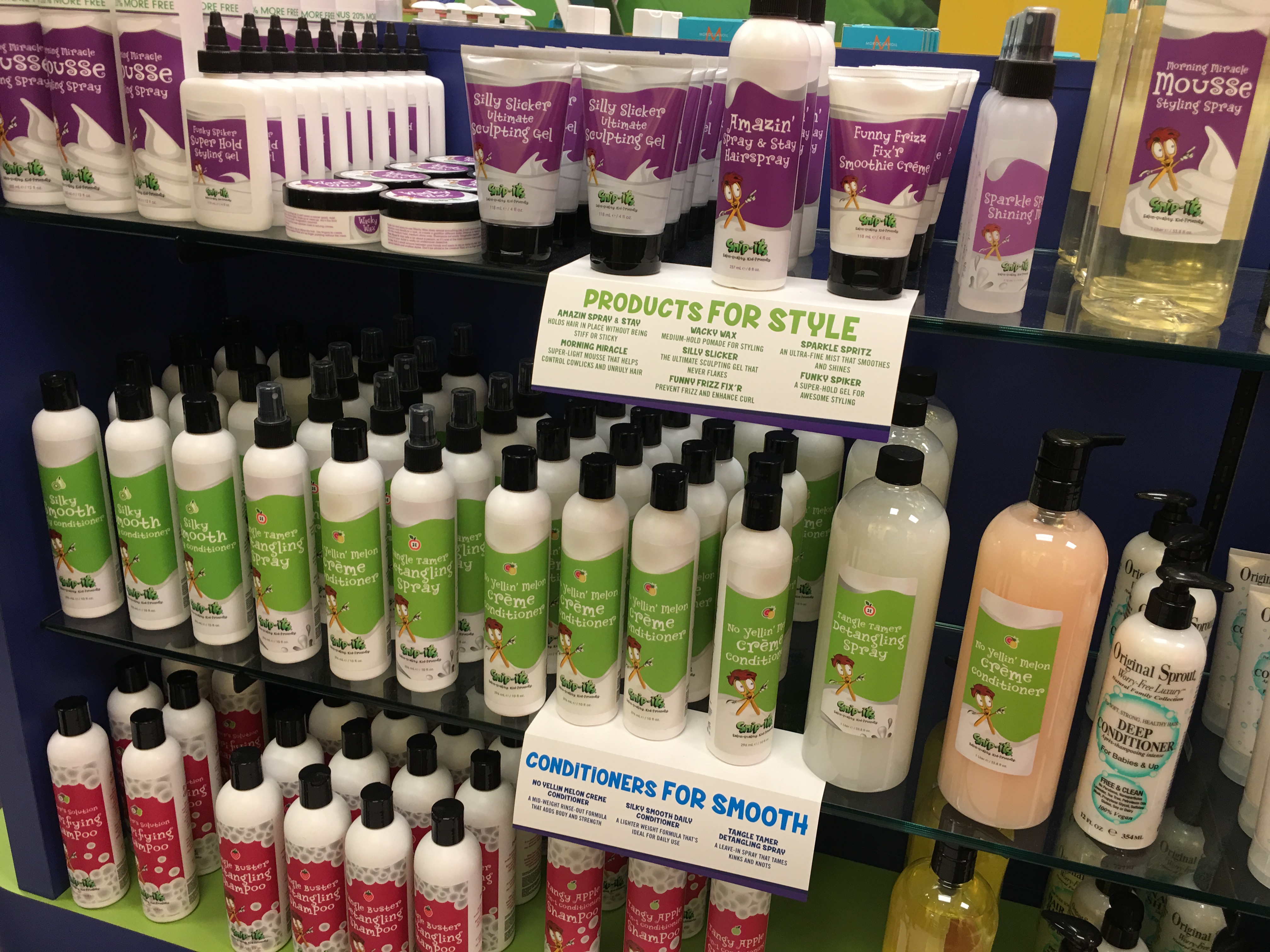 Owner Duc Quan wants to make sure this often seen “task” of getting a hair cut is turned into something fun for kids along with an educational experience. That’s why he provides information to kids and parents about correct kids hygiene and age appropriate products. With a 4 1/2-year-old daughter himself, Quan knows a thing or two about kids. And his passion for good products for kids is seen on his shelves. The salon offers Snip-its brand shampoos, conditioners and styling products, plus a 100% vegan brand, Original Sprout and perennial mom-favorite, Moroccanoil.
