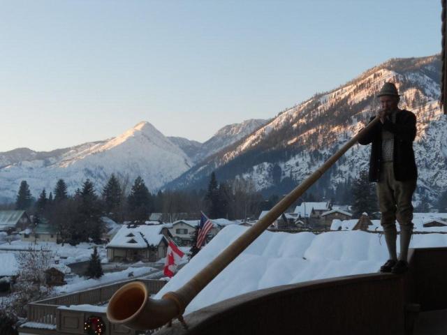 Given that Leavenworth’s a tourist town, you’ve got your pick of hotels. But you really can’t beat the Enzian Inn, which has indoor facilities – pool, hot tub, basketball court, ping pong room – that are great for burning off some pre-bedtime energy. The kiddos will need to get some rest, though. A delicious hot breakfast awaits in the hotel’s top floor, along with special daily entertainment. Every morning at 8:15 and 9:15, Enzian founder Bob Johnson, decked out in authentic Lederhosen, climbs atop the balcony railing and plays the Alphorn, a super-long wooden horn. His backdrop is a stunning view of the mountains, and the whole scene…well, it makes you feel as if you’re actually inside the snow globe.