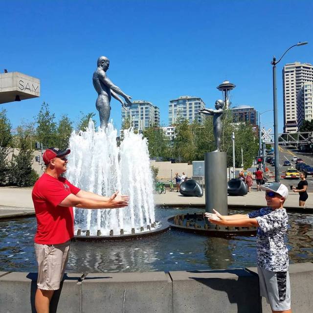 Also located on Alaskan Way as part of the Olympic Sculpture Park, the Father and Son Fountain is definitely an interesting piece to check out. You can walk fully around it and see different views depending on the time of day you visit. Psst...don't forget to bring your pennies as your kids will most definitely want to throw in one, or two!